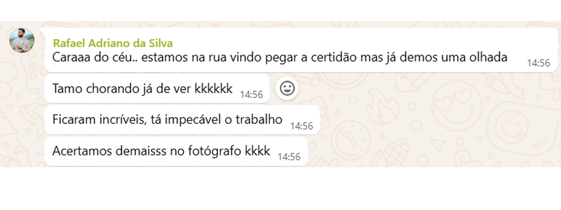 A contratação é feita através de meio virtual, facilitando para você nos contratar em qualquer lugar do mundo. Após preencher o formulário no botão no final desta página, nós emitimos seu contrato e enviamos o link para assinatura no e-mail cadastrado. Nosso contrato é autenticado digitalmente e pode ser assinado pelo celular. Após o contrato assinado, criamos um grupo exclusivo no WhatsApp com o casal para estar alinhando as fotos, enviando dicas e tirar dúvidas, assim todas as informações ficam reunidas em um só local e nós ficamos atualizados em tempo real.