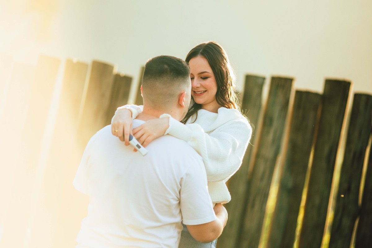 Cerca de 30 minutos antes de chegarmos ao local, Fernanda fez uma surpresa que mudou tudo: contou ao Leo que eles estavam esperando um bebê. A emoção daquele momento ainda ecoava quando começamos a fotografar. Cada olhar, cada abraço e cada sorriso carregavam agora um novo significado.